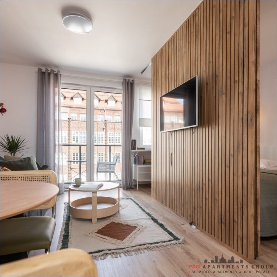 Gdańsk ŚródmieścieAbout the apartment A sunny apartment on the Granary Island with a beautiful view of the Motława tributary from every window.In the vicinity there is a SPA & Wellness Center with a wide range of treatments, a fitness area, saunas and a swimming pool. Layout: separate bedroom, living room with kitchenette, balcony and bathroom. Equipment and ameni[...]