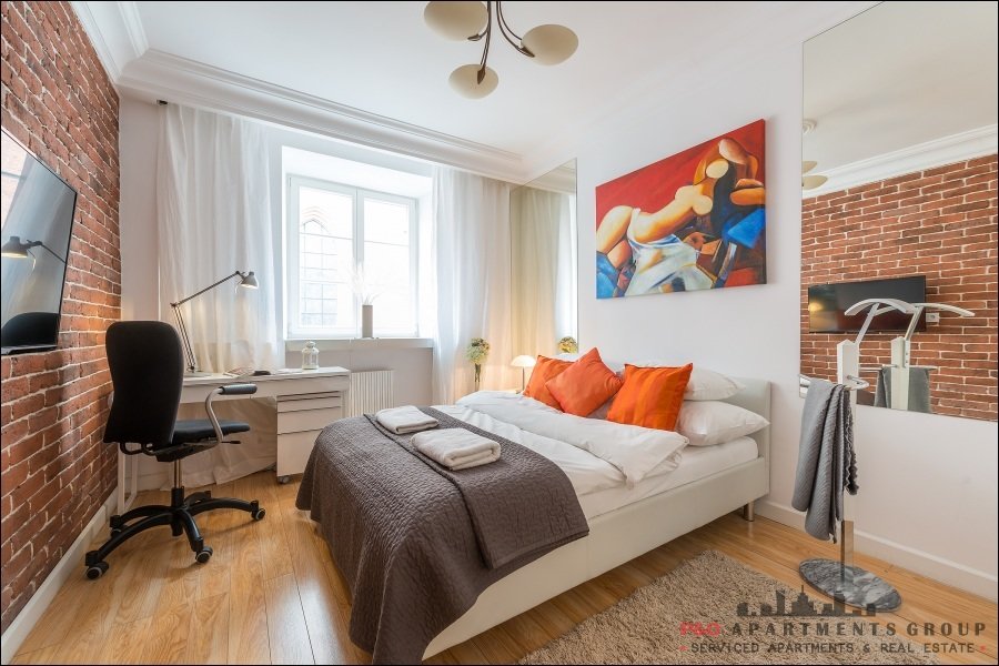 Warszawa Starówka (Old Town)Un apartamento elegante y lujosamente amueblado ubicado en el 3er piso en un edificio en el casco antiguo (sin ascensor), en la calle Podwale junto a la Barbacana y la plaza del Casco Antiguo.Apartamento es muy luminoso y tranquilo. Hay una cocina totalmente equipada, sala de estar con un sofá cama plegabl, una mesa con 4 sillas, dormitorio ampli[...]